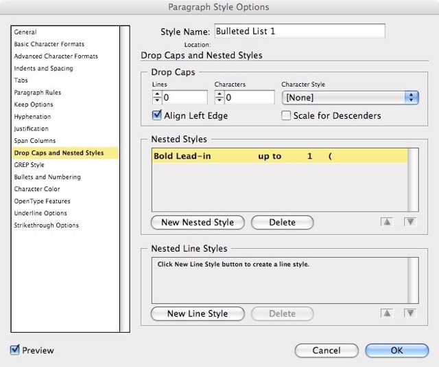 Nested styles let you format nearly any range of text in a paragraph. However, they have one limitation: They don’t recognize lines of text. Nested Line Styles resolve this predicament. The Nested Line Styles feature enables you to apply a character style to one or more lines, either consecutively or in a repeated fashion. The nested line style shown in Figure 6, which formats the first line of the paragraph, is just one example of what you can do with nested line styles.
