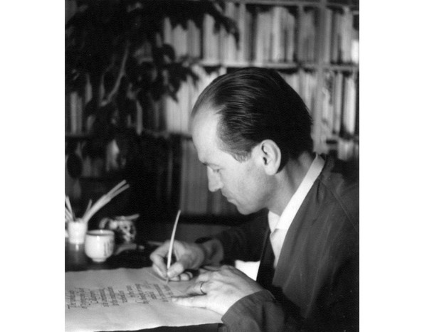 World War II could have been the end of his artistic career, but he ended up working as a cartographer for the German army, and even spent time as a prisoner of war by the French. It was during the war that he began keeping sketchbooks that included hand lettering that rivaled anything set in lead type and showcased his talents with watercolors. [NOTE: I recently wrote about a current Kickstarter project that he was involved with to reproduce those sketchbooks.] After the war, he taught calligraphy and worked as a graphic designer in the publishing industry.