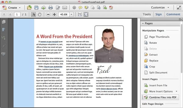 One last tip: If maintaining the smallest possible file size is important to you, after you replace pages in a PDF, choose File > Save as Other > Reduced Size PDF.