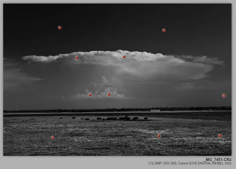 Figure 9. With two Control Points, I can darken the sky without having to create any masks to protect the clouds or the ground. Click the image to see a larger version.