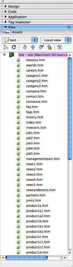 After this point in the process, SiteAssist commits some dialog box hocus-pocus and moves your Web site into Dreamweavers’ Files palette (Figure 7), then gets out of the way. The rest of the editing is a matter of either authoring the content or copy/pasting into the appropriate pages in the list.