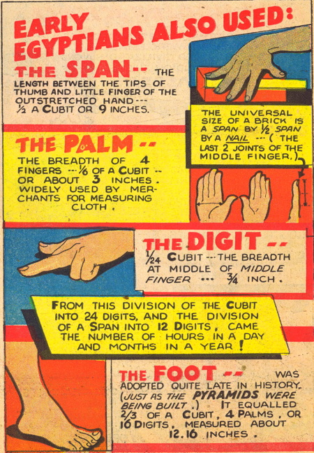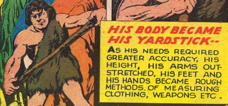 As you might imagine, the art of measuring goes back a ways — the booklet begins with early cave men who used sticks and body parts to measure out various things.