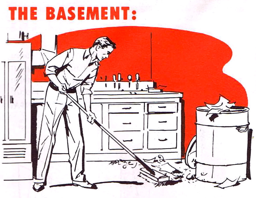 Teaching kids about fire safety is an age-old process and local fire departments often supply schools with educational pamphlets on the benefits and dangers of fire. We all learned about the combination of heat, fuel, and oxygen that leads to fire, and what to do in case of fire in the home or elsewhere. Today’s images all come from two fire-prevention pamphlets produced by The National Board of Fire Underwriters, a group of insurance companies. Click on any image for a larger version.