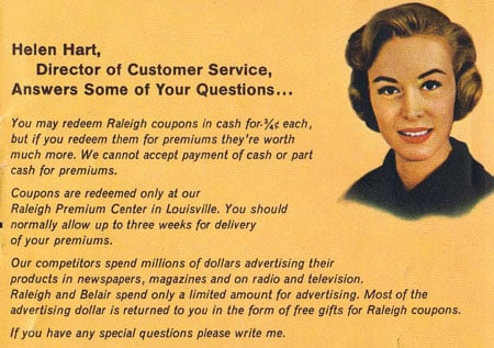 At one point Raleigh was the fourth best-selling cigarette brand, so the incentive apparently worked. As the company explained it, they spent less on advertising and passed those savings on to customers in the form of free merchandise.