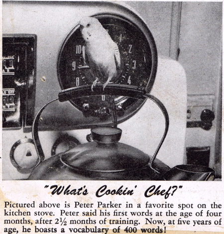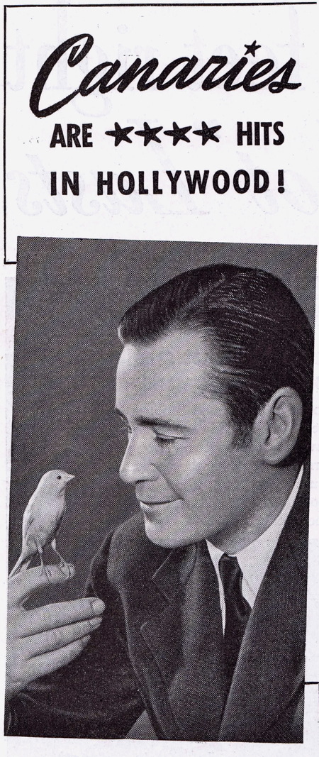 In the 1940s there were many ads promoting birds as pets, including a series from a birdseed company that featured Hollywood celebrities and their feathered friends. These ads are from 1942.