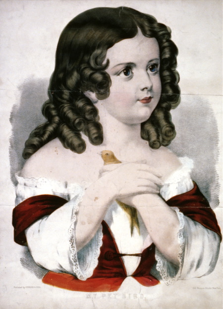 Birds have been kept as pets for as long as people were able to catch and cage them, and some birds seemed naturally inclined toward people and don’t even need the cage. Here is a Currier and Ives print from the turn of the previous century, and a photo of a woman and her pet parrot from 1924.