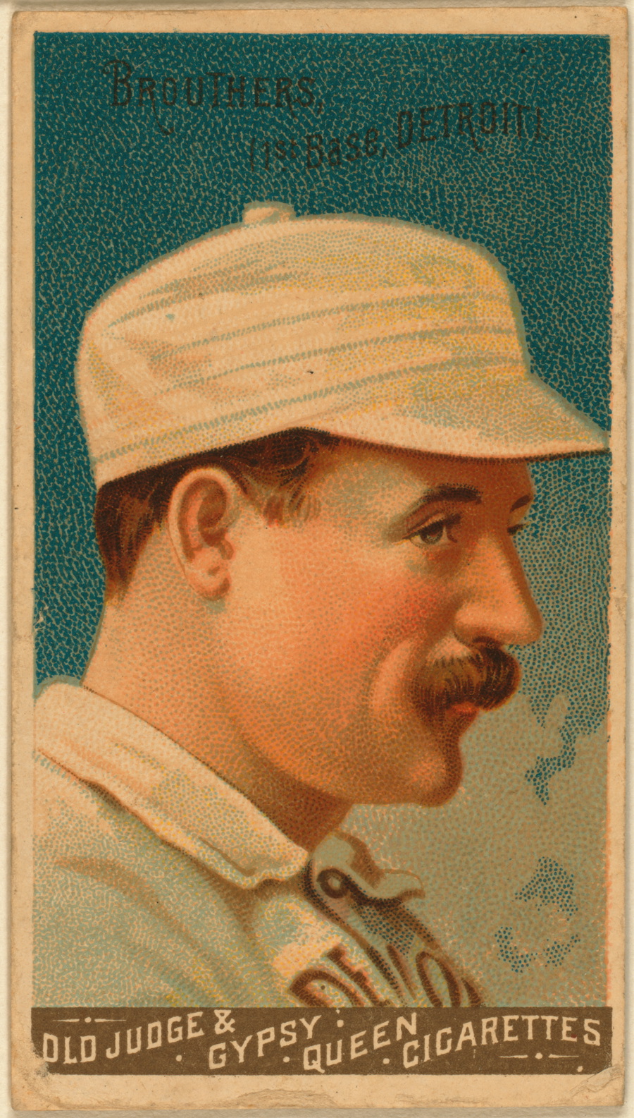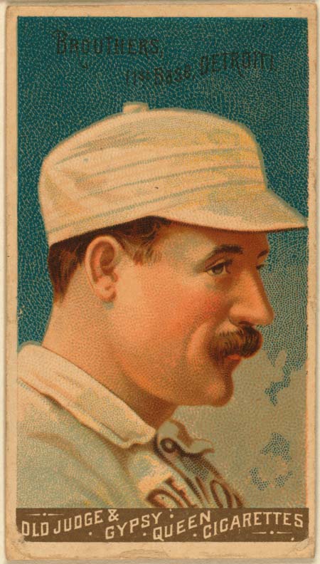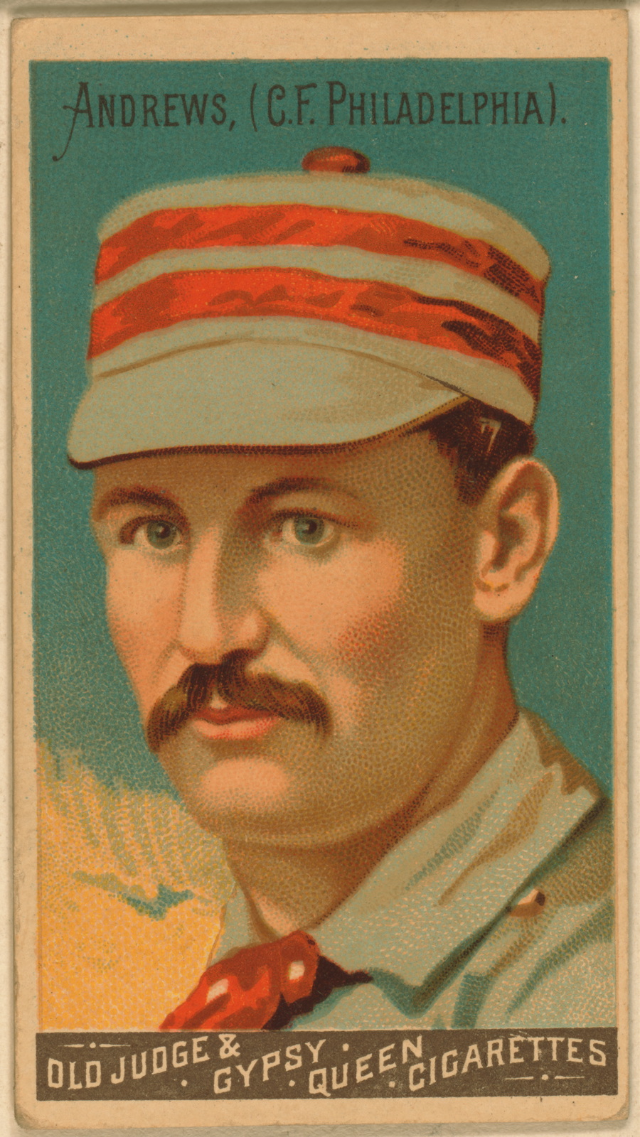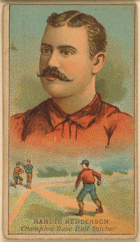 Baseball cards first appeared in photographic form soon after photography became popular, and by the late 1800s there were printed commercial baseball cards. The first cards were inserted with candy or, more commonly, with tobacco products. These two cards are from 1888 and picture Hardie Henderson of the Brooklyn Trolley-Dodgers and Ed Andrews from the Philadelphia Quakers.