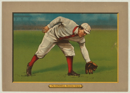 Since we’re at the time of year when baseball has its big finale, I thought today I’d look at some early baseball cards — and some great moustaches. These cards are from a period of 1887 through 1914 and are from the Library of Congress collection. Click on any image for a larger version. These two are from 1911.