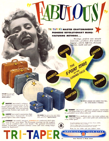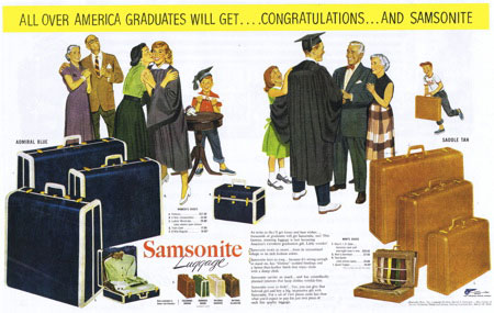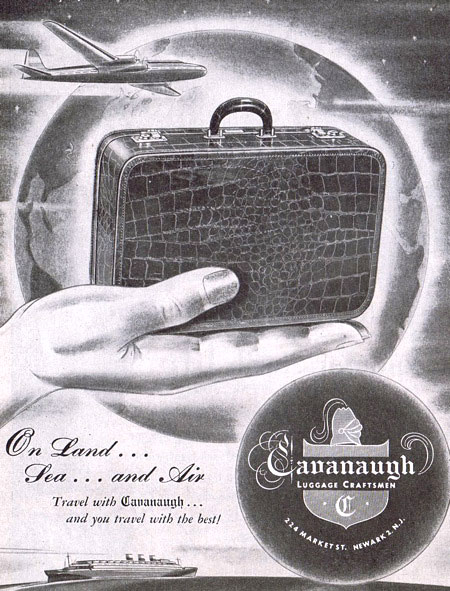 But like everyone these days, I’ve learned to travel much lighter–it’s just a reality of modern living, what with excess baggage charges, security issues, and the general hassle of travelling. So it seems appropriate to look at the art of luggage in advertising and in life. Click on any image for a larger version.