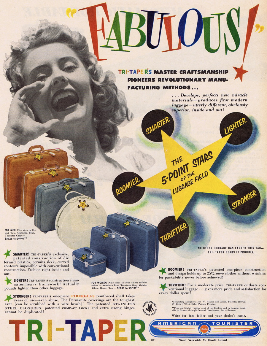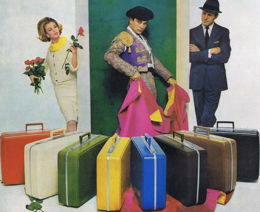 But like everyone these days, I’ve learned to travel much lighter–it’s just a reality of modern living, what with excess baggage charges, security issues, and the general hassle of travelling. So it seems appropriate to look at the art of luggage in advertising and in life. Click on any image for a larger version.