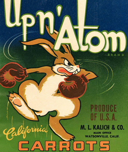 Labels needed to be eye-catching to compete for mind share in the busy produce markets of big cities, so bold, expressive graphics (including lots of three-dimensional type) were the norm.