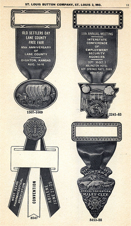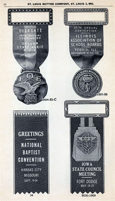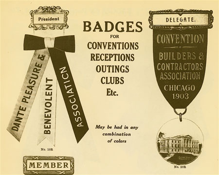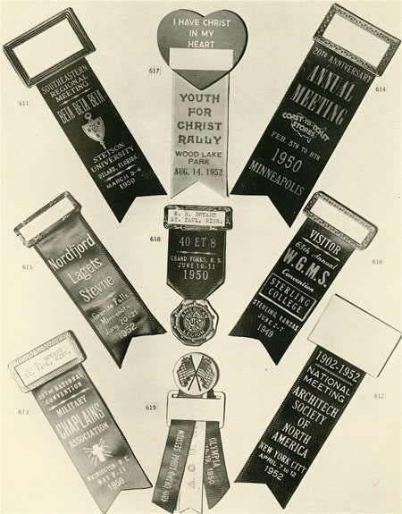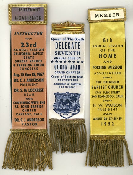 But that wasn’t always the case. Early convention badges, like these from the turn of the twentieth century through the early 1960s, were made of fine silk or cotton, had gold-metal braiding, and names that were hand-lettered or typed into gold frames.