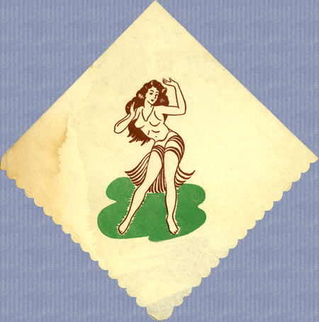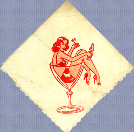 But cocktail napkins certainly play a special role in the exchange of ideas and information. I’ve chosen here to show only cocktail-napkin art of a generic quality—the sort a tavern might buy from a supplier catalog, as opposed to those establishments rich enough to have custom-printed napkins. I prefer the whimsical nature of stock art, unencumbered by logos, phone numbers, and addresses.