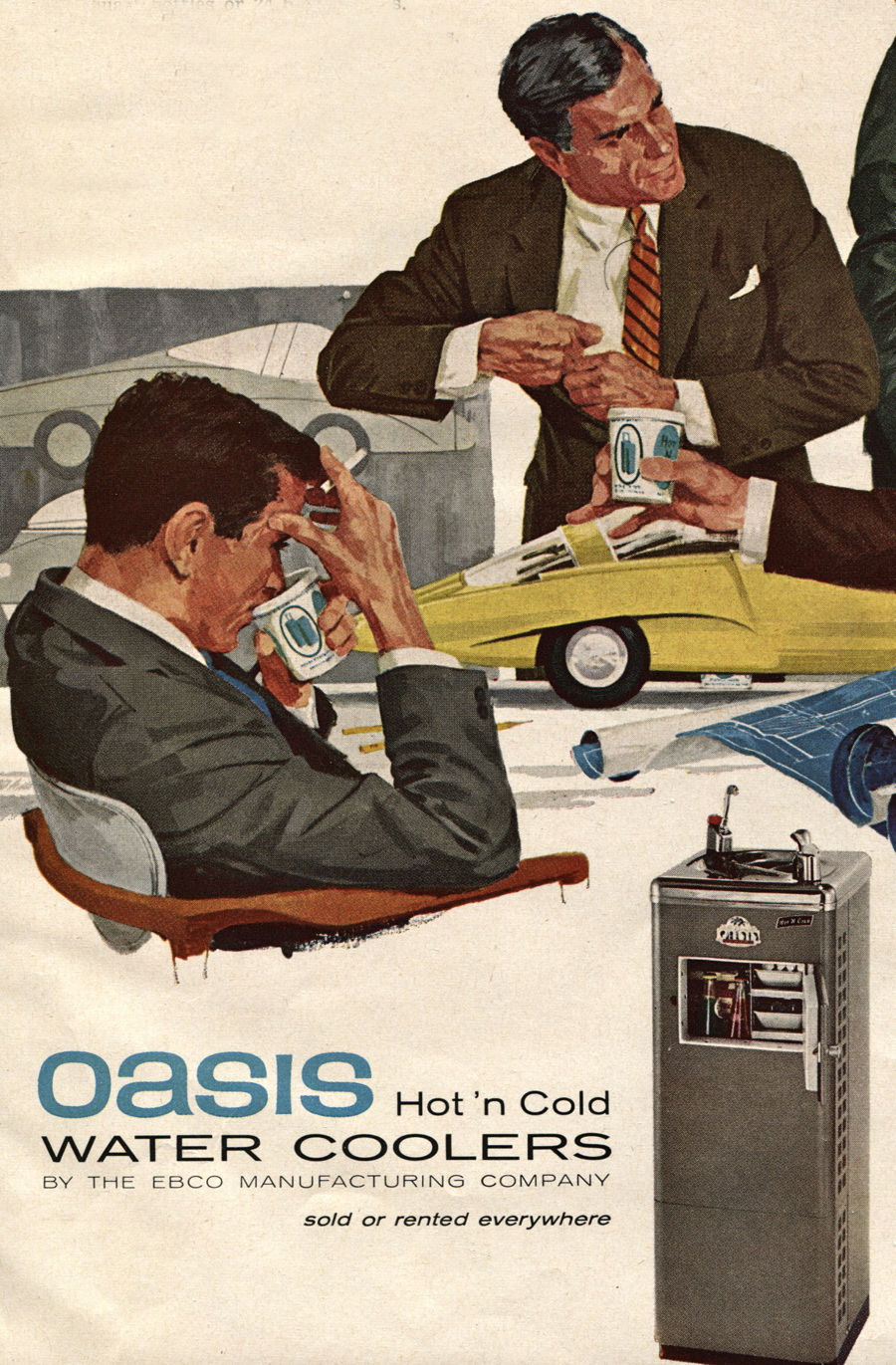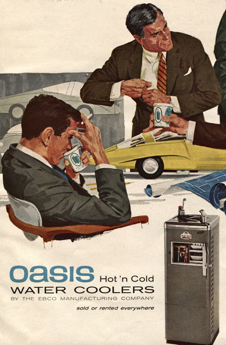Every place I’ve worked of any size has had a water cooler of some sort, or bottled water in the fridge. But I’ve never seen water fountains like the one below, and I’ve never noticed people gathering around the water cooler to gossip or compare opinions of the previous night’s television lineup. But I’m told that was common back when running to Starbucks was not an option.