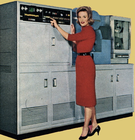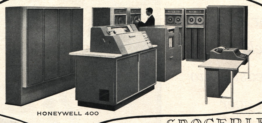 There was nothing particularly romantic about that sort of clerical work, and the big data-processing computers that were entering the scene foretold a wave of change. Those rows and rows of steel desks would soon be gone, as manual processes like bookkeeping, order processing, and typing individual letters became automated. Here are ads for the National 304 Data Processing System, the Philco 2400, and the Honeywell 400 Electronic Data Processing unit.