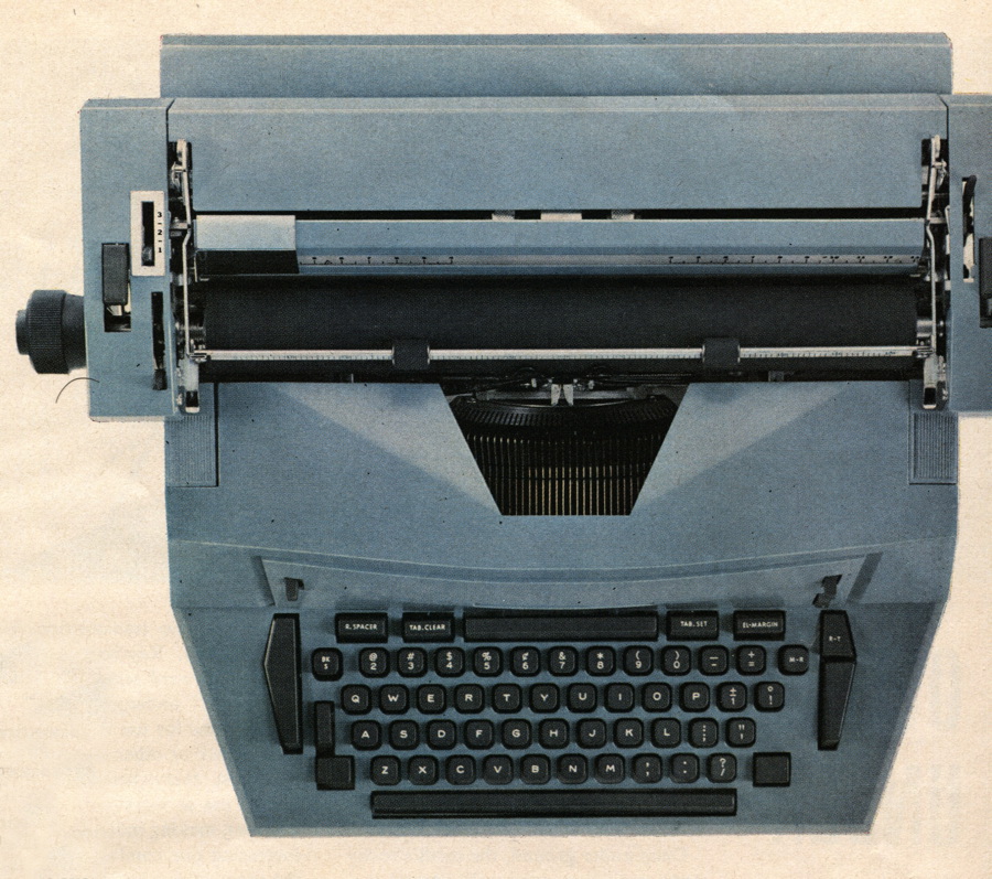 The cubicle culture we grew to know so well in the 1980s and ’90s hadn’t really started. Instead, desks were often lined up in rows in large rooms, where I imagine the noise was distracting. But people worked at their desks back then; eating and surfing the Internet were not part of the equation. Aside from a photo of the spouse or family, there wasn’t much in the way of personalization tolerated. You had your phone, your adding machine or typewriter, and an in and out box. Here’s an ad for the Underwood Raphael electric typewriter.