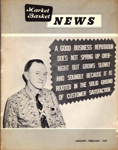 I was recently looking through some old boxes of memorabilia from my dad and came across a bunch of company newsletters from when he worked for a chain of Southern California super markets called Market Basket. He was fairly typical of the post-war generation in that he went to work for the company in his 20s and stayed for over 25 years, working his way up from a checkout clerk to a vice president, holding many different jobs along the way. Thanks for indulging me today as I explore these newsletters and a little bit about my dad.