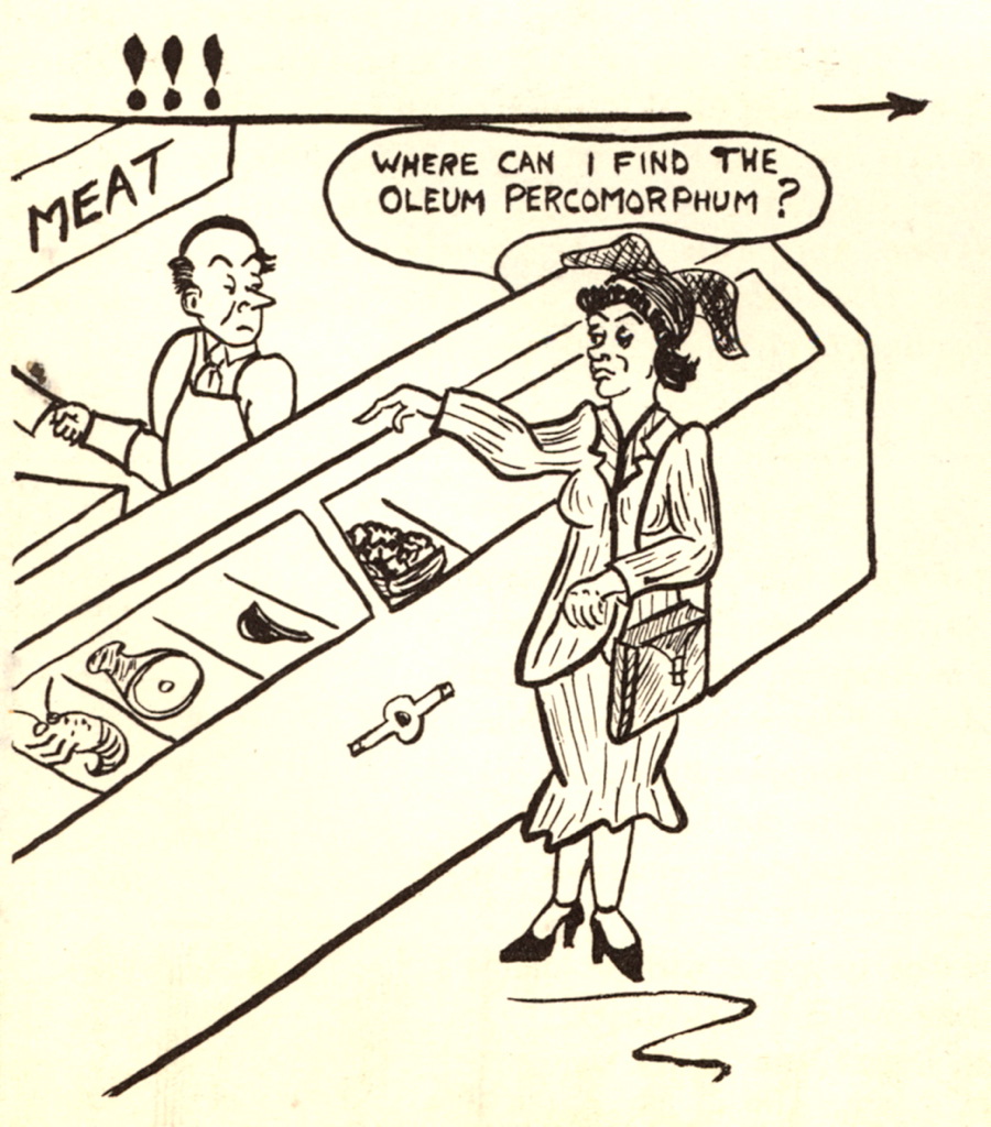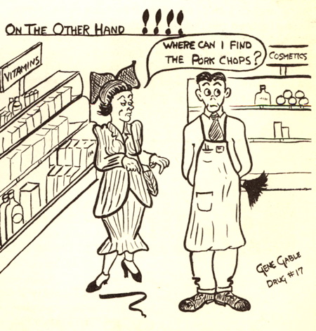 My dad, it turned out, also contributed cartoons and some artwork to the newsletter. Here’s a cartoon he did when he worked at store #17 in the drug department. I think you had to work in a market to get the humor.