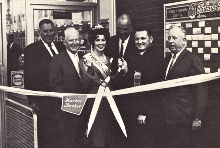 The thing I remember most about my dad being in the super market business was attending the various new store grand openings. Back in those days a new super market was a big deal for a neighborhood and so the openings were quite the celebration. Here is a shot of a ground-breaking for a new store and several ribbon-cutting ceremonies, complete with local mayors, county supervisors and other dignitaries.