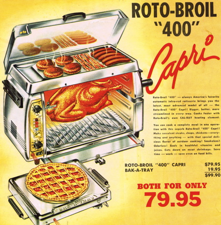 A rotisserie is a versatile cooking platform. You can bake potatoes, fry eggs, even heat coffee. But my mother only used hers for making roasts. Everything else went into the frying pan to be drowned in some form of saturated fat.