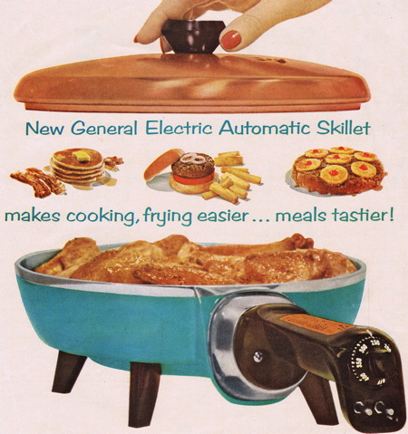 Most of this cooking took place in a large, square electric frying pan made by General Electric. These were popular fixtures in homes during the 1950s and ’60s, and in our house, anyway, was simply where dinner was cooked. It didn’t matter much what you were cooking, as long as it was fried in several inches of Wesson oil and burnt beyond recognition. My mother’s personal favorite was fried chicken gizzards, which we endured on a fairly regular basis. But they didn’t taste much worse than any other meat, fish, or pork that came out of that square pan.