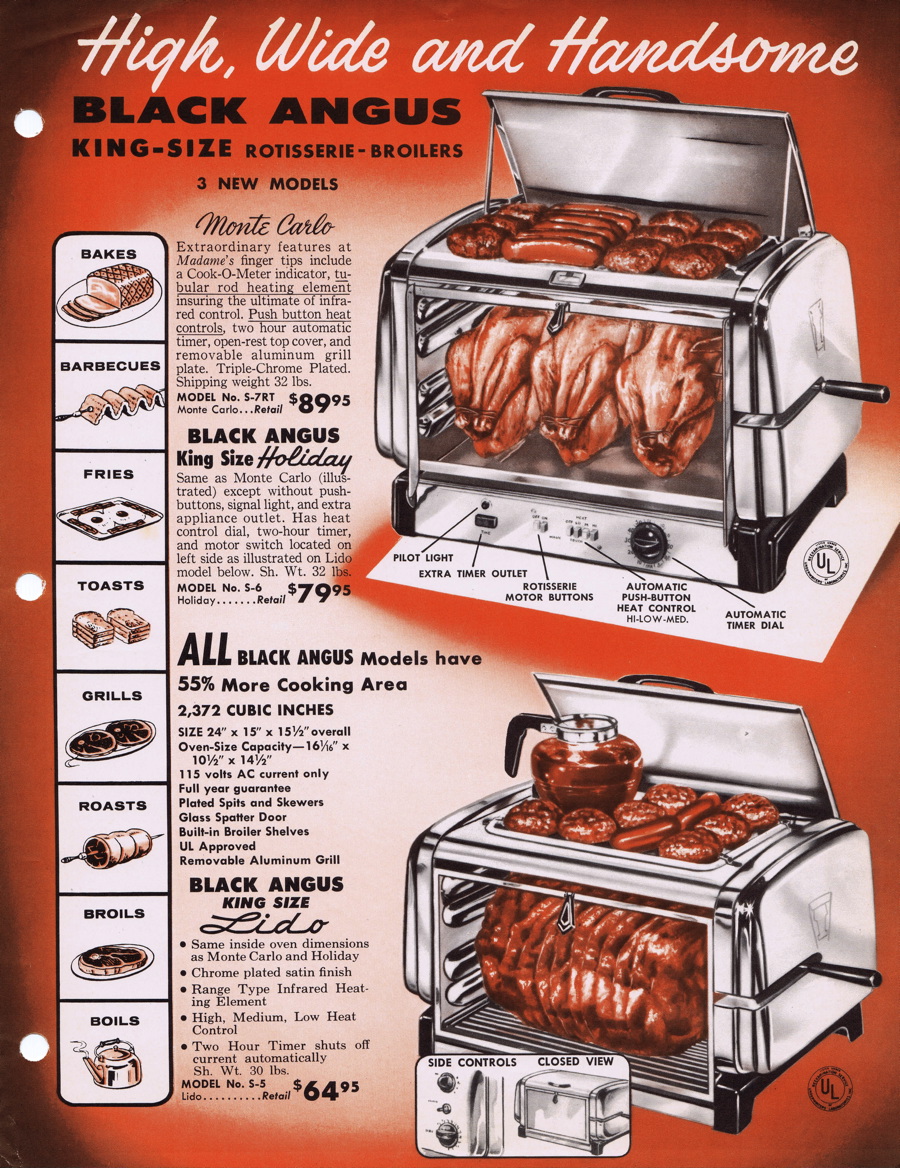 A rotisserie is a versatile cooking platform. You can bake potatoes, fry eggs, even heat coffee. But my mother only used hers for making roasts. Everything else went into the frying pan to be drowned in some form of saturated fat.