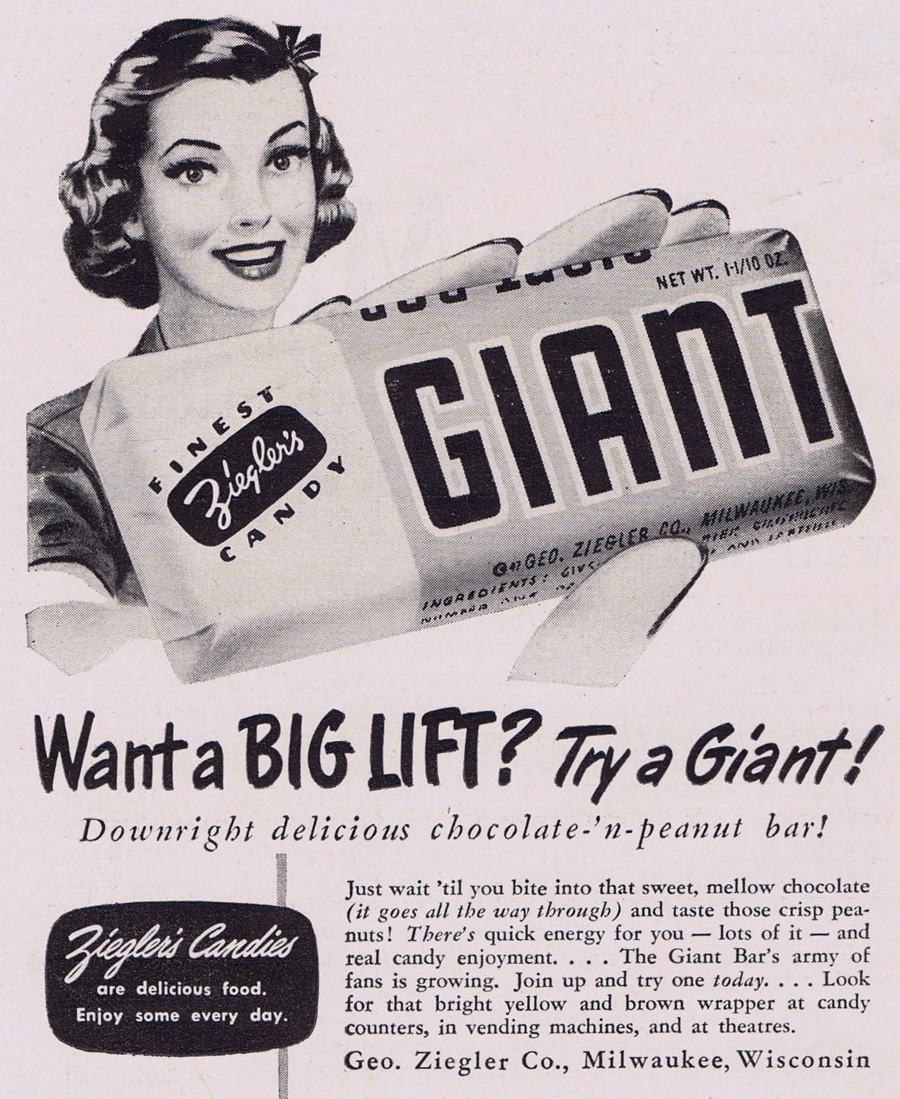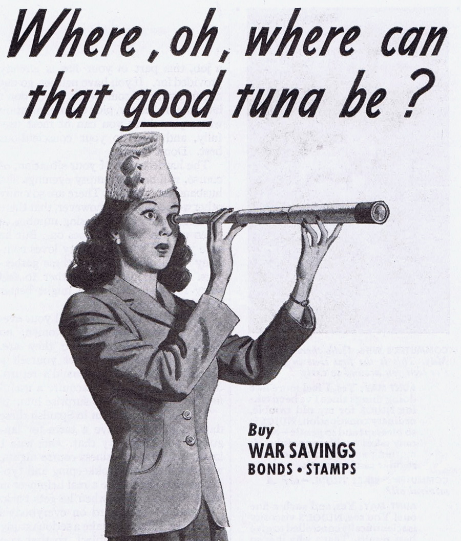 In 1943 it wasn’t easy to find any good tuna, apparently, though I guess bad tuna was in good supply. And the candy bars back in 1948 were awfully big. You might even say giant.