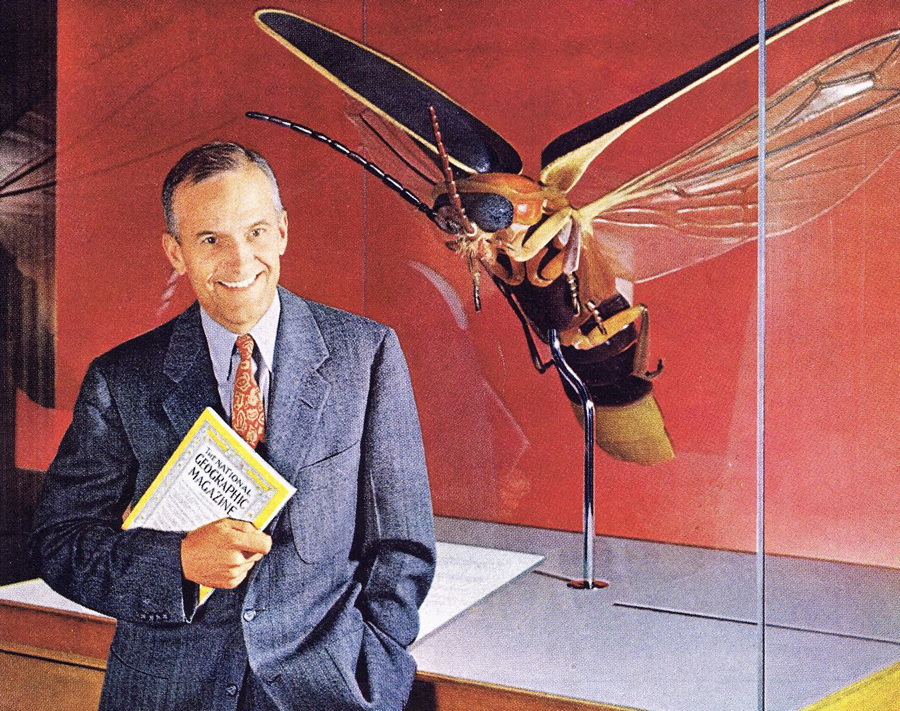 There’s something pretty creepy about giant bugs, especially when they have a sinister face such as this one from 1945, followed by a picture from National Geographic in 1956.