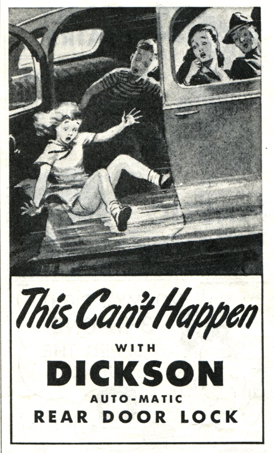 Life wasn’t quite as safe as it is today back in 1947 when this ad ran for Dickson door locks. It’s followed by an amusing ad extolling the virtues of lead used in the home, from 1937.