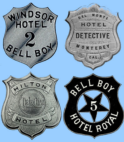 Soon it wasn’t just law enforcement that was using badges as a means of identification. Bellhops began sporting badges, as did train conductors, bus drivers, building inspectors, elevator operators, and all sorts of municipal and governmental employees. Often accompanied by special metal hat bands or “shields,” metal badges became an important part of many uniforms. If you were really important, your badge might display your name. But most badges referred to the wearer by number.