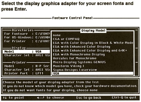 Because every display back then required a different screen font, it took a lot of set up to run PageMaker on your system — if it ran at all. Here’s a shot of the display set-up window.