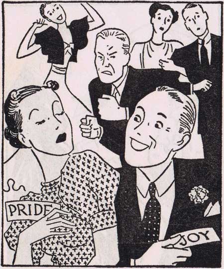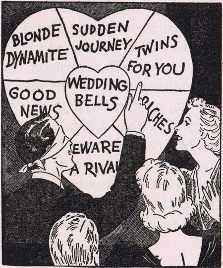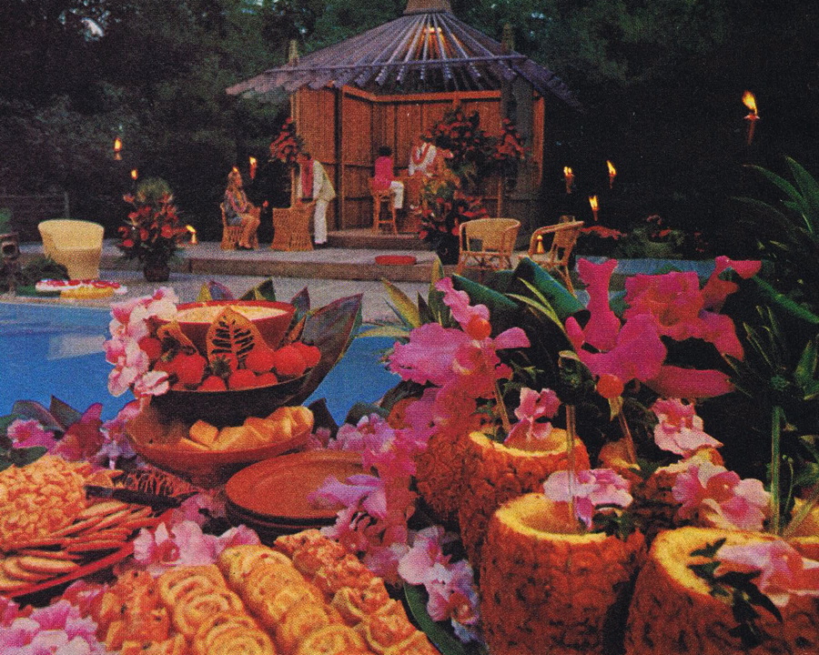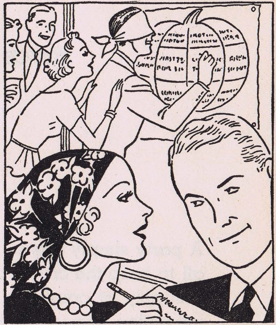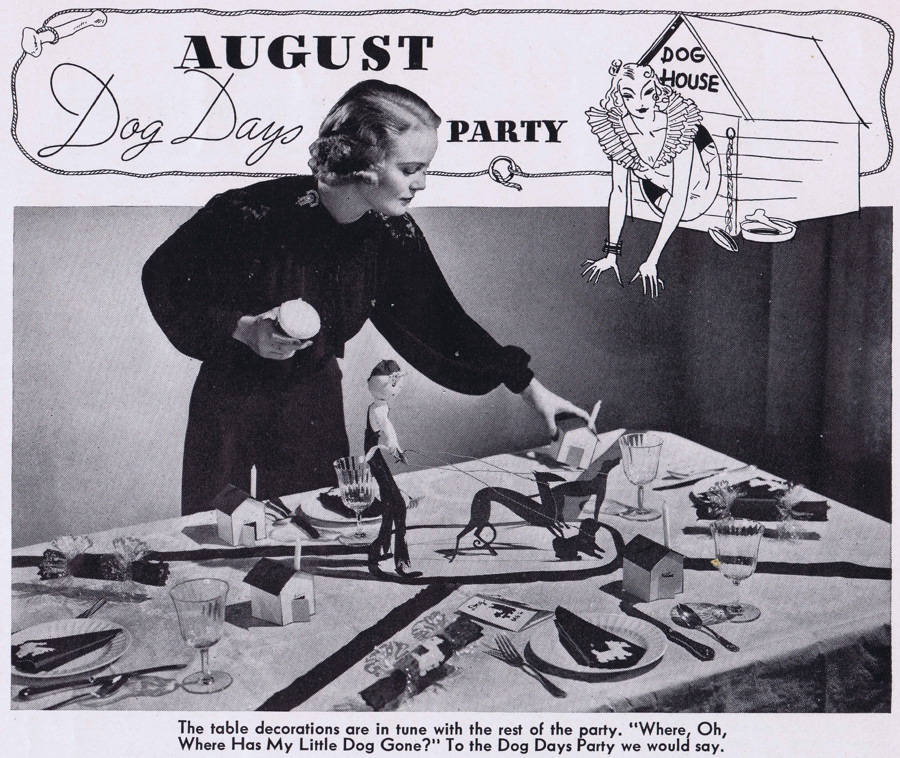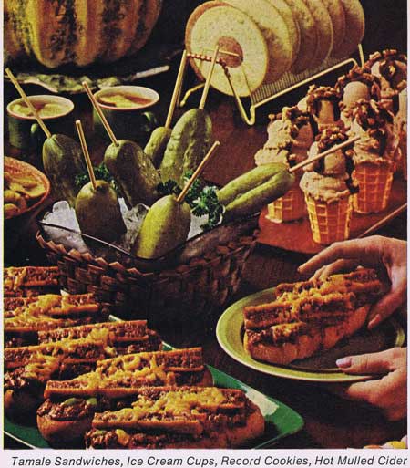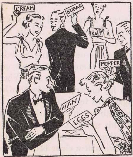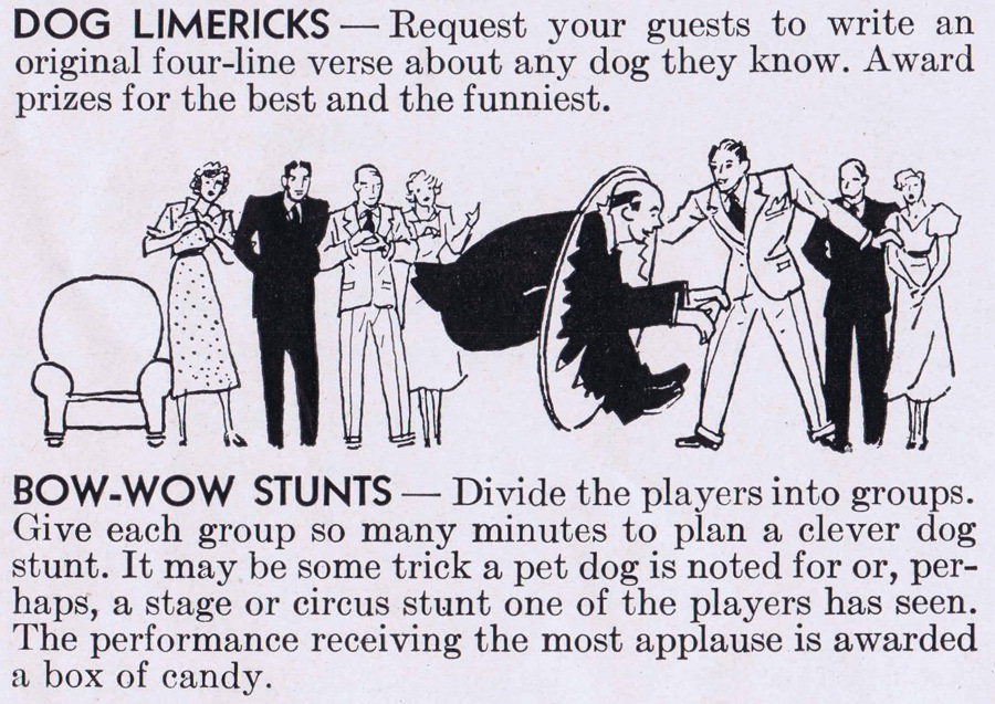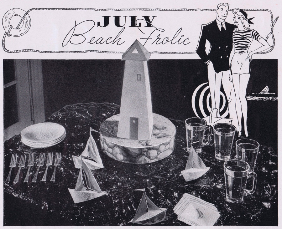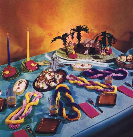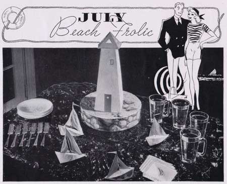 Theme parties and party games seem to have been much more common back in the 1940s through 1960s, the era from which today’s images come. My archives include a lot of party-game hand-outs and books devoted to elaborate party themes. (In fact, I covered the topic before.) Click on any image for a larger version.