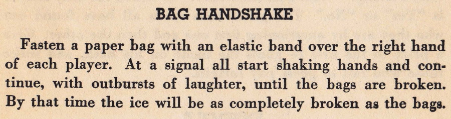 But even worse are the physical games where people are expected to perform some goofy task, like shaking hands with paper-bag “gloves” or performing like dogs.
