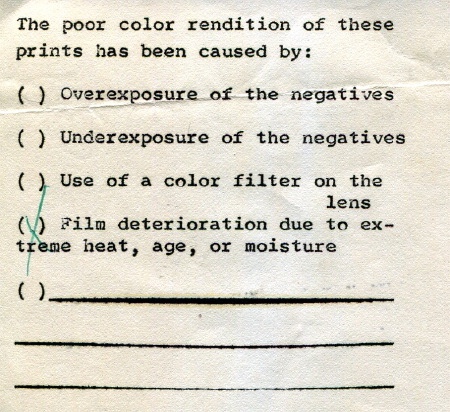 If you were lucky you got your negatives and prints back in decent shape and they were actually your pictures. But it wasn’t that uncommon to get someone else’s vacation or graduation pictures, and then good luck straightening out the mix-up. And pity the poor soul who received one of the dreaded “why your pictures look like crap” notes that were tucked in the envelope when disaster of some sort struck.