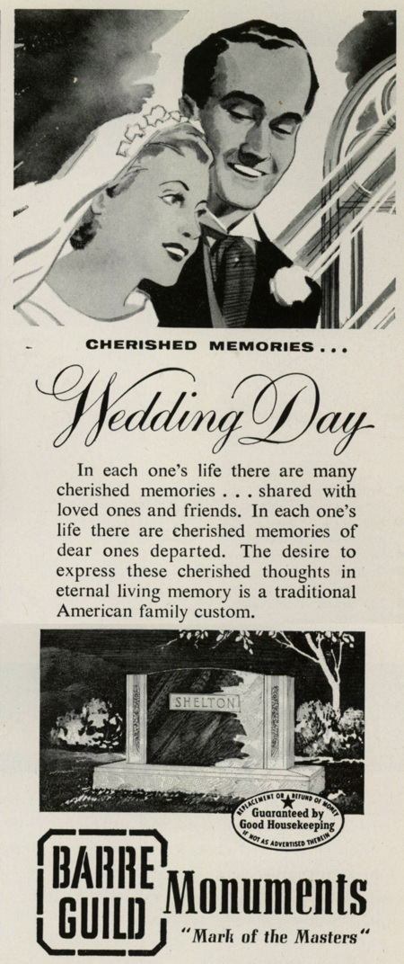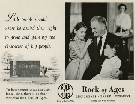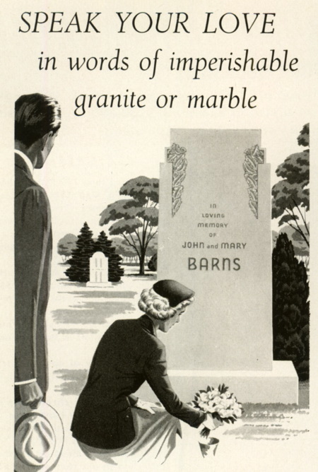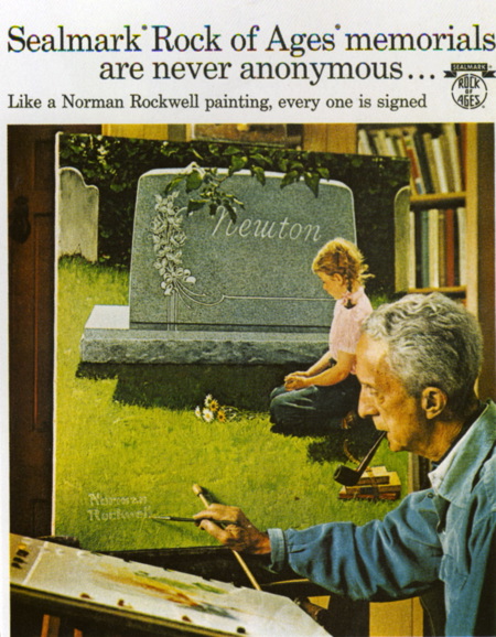I suppose it’s a little tricky advertising for tombstones. I haven’t seen any recent examples, certainly not complete with celebrity endorsements like this one from 1966 featuring Normal Rockwell.