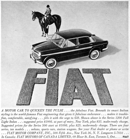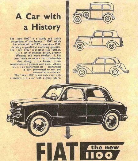 Fiats were, as you can tell from the many languages represented in the ads pictured here, sold all over the world. They enjoyed particular success in Eastern Europe during the cold war.