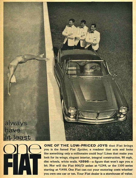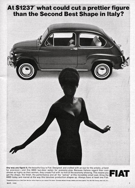 Fiat prided itself on its designs and played up the “sexy” part as much as possible. One ad campaign had Fiats being the “second best shape in Italy.”