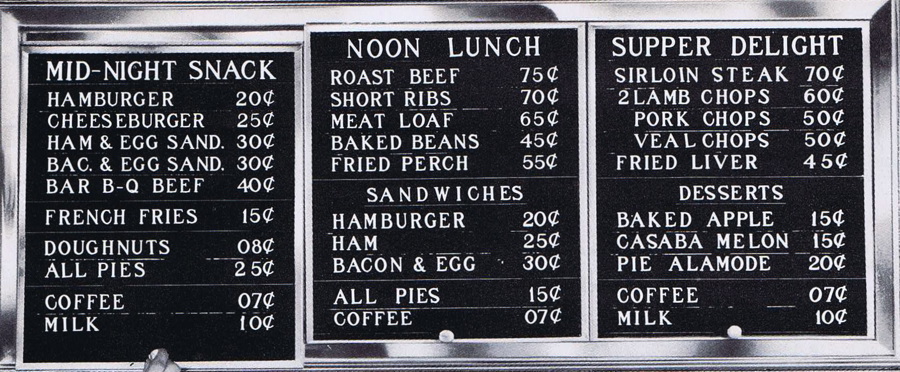 In 1949 you could get pot roast, French-fried potatoes, lima beans, apple pie, and coffee for 35 cents. And that same year a chocolate sundae would cost you 10 cents.