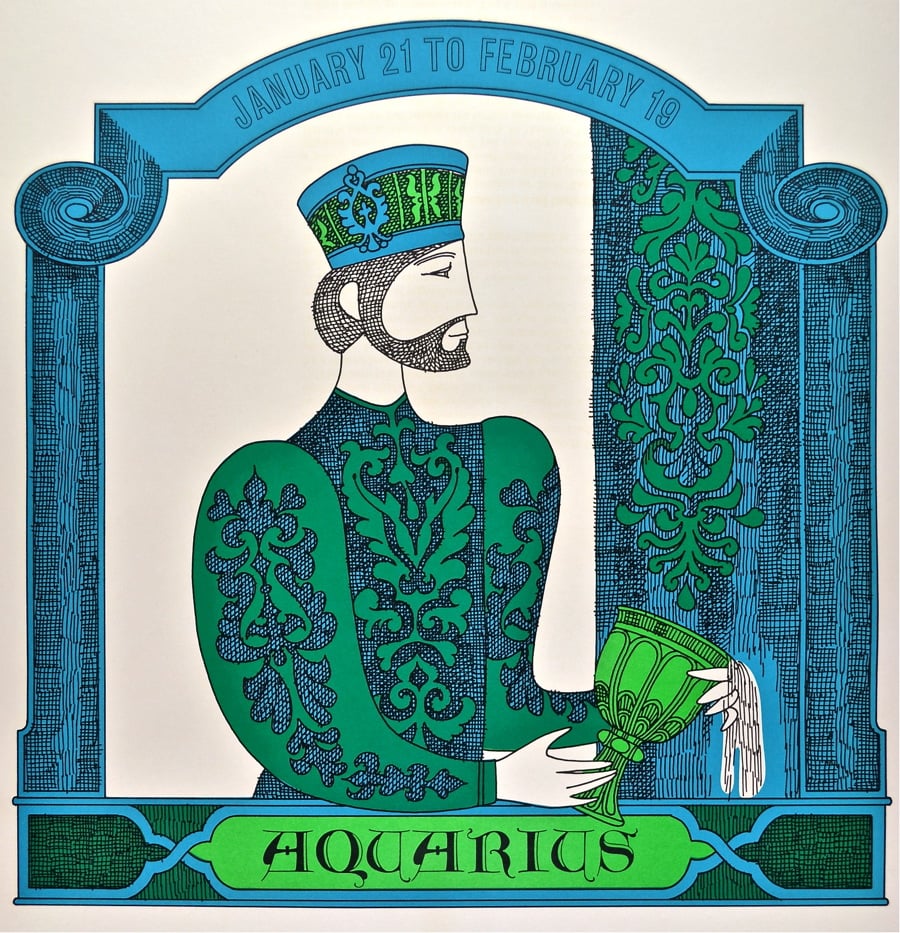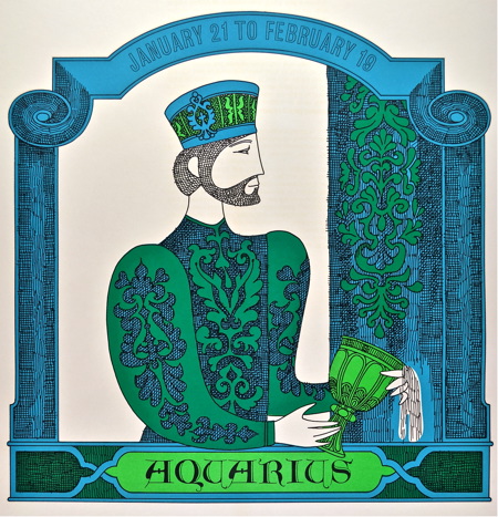 Aquarius, the water bearer (January 21 to February 19), is the 11th sign of the zodiac and those born under this sign are eccentric, individualistic, assertive, inventive and sometimes cool and detached. The symbol of the water bearer is of one who gives life and spiritual food to the world.