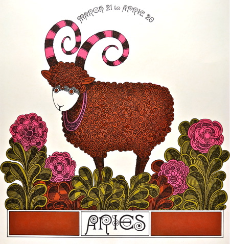 Aries, the ram (March 21 to April 20), is the first sign of the Zodiac and those born under this sign are active, aggressive, initiating, independent, sometimes combative, assertive and often thought of as born leaders. Aries are lively, energetic and daring.