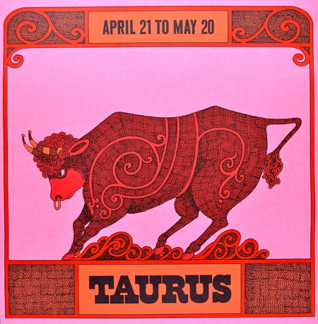 Taurus, the bull (April 21 to May 20) tends to produce people who are persevering, down-to-earth, often stubborn, possessive and dependable. Taureans are sometimes described as “bull headed” and can be dogged and determined.