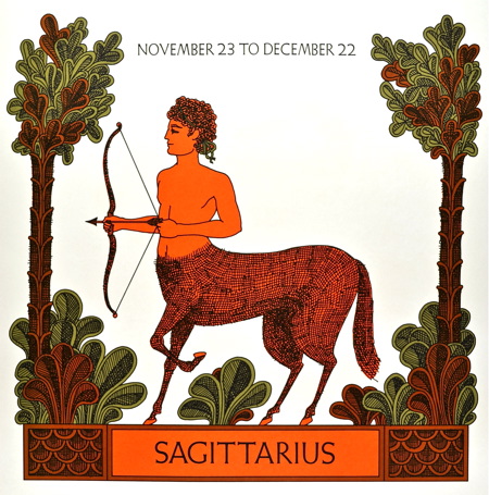 Sagittarius, the archer (November 23 to December 22), represents those who are honest, optimistic, outspoken, independent and adventurous. The archer symbolizes the animal natures and desires of man.