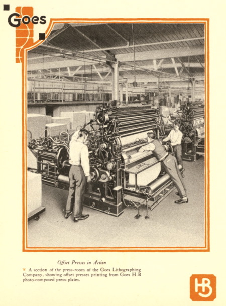 Goes, founded by Charles B. Goes, is still in the building it has occupied since 1904. It’s not only one of the oldest continuously operating printers in America, but an historically significant one. Goes was the first installation of the Harris offset press, one of the earliest examples of offset printing (as opposed to letterpress, which was the more popular method of the time).