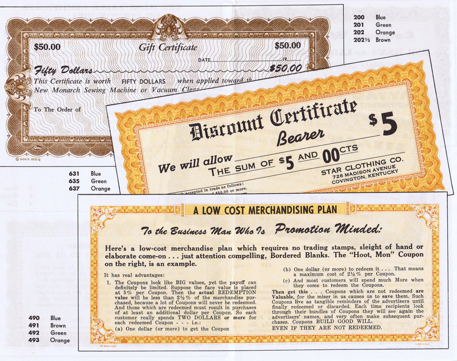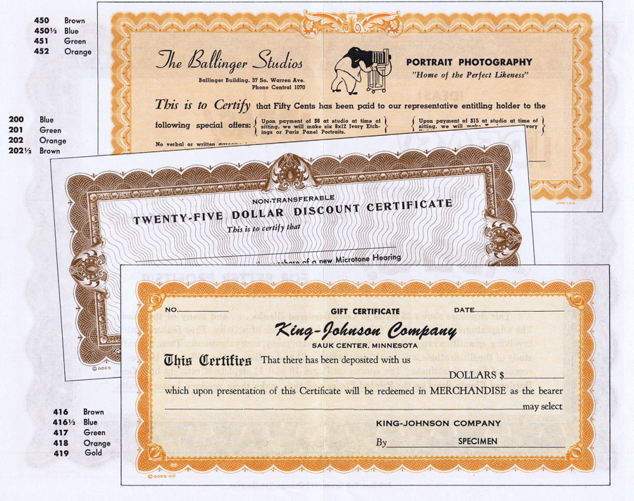 Eventually the company moved from being a commercial printer to being more of a publisher, producing pre-printed material which was then sold to other printers or office-supply stores. This is where you’ve probably seen Goes’ work. You can still pick up blank Goes certificate borders at stationery stores, and many of them still look like they may have been produced at the turn of the 20th century.