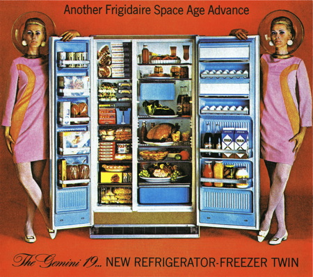 Prosperity has always been measured in part by what we eat, so the prosperous home was one with way too much food. Even the largest family couldn’t possibly eat all the items in some of these ads before it spoiled or just got too gross to eat.
