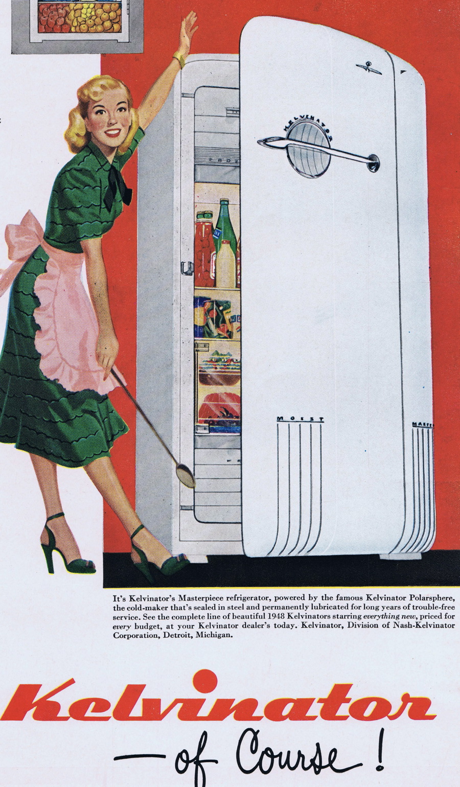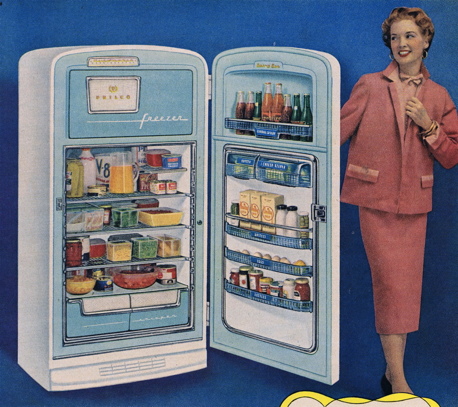 Prosperity has always been measured in part by what we eat, so the prosperous home was one with way too much food. Even the largest family couldn’t possibly eat all the items in some of these ads before it spoiled or just got too gross to eat.