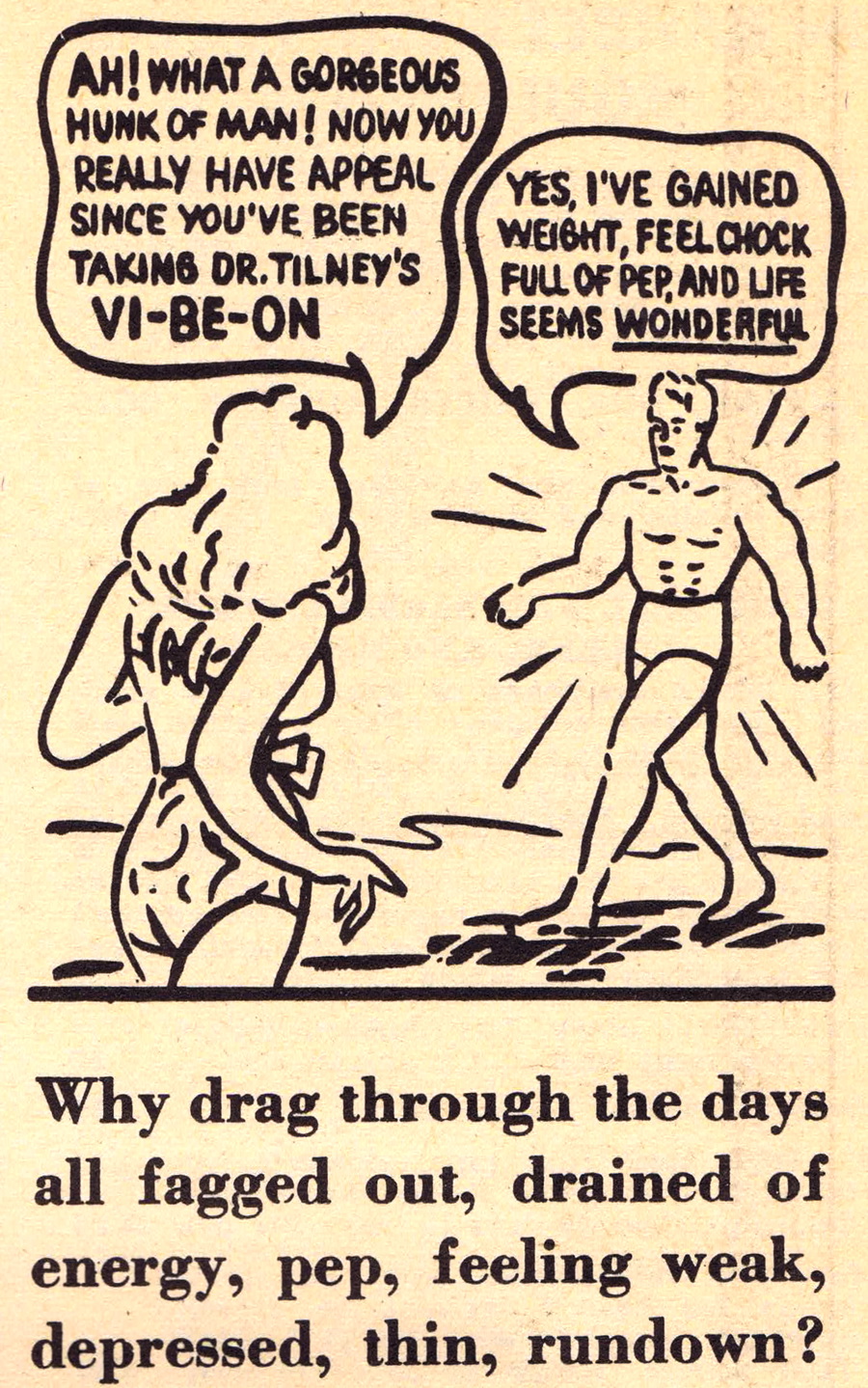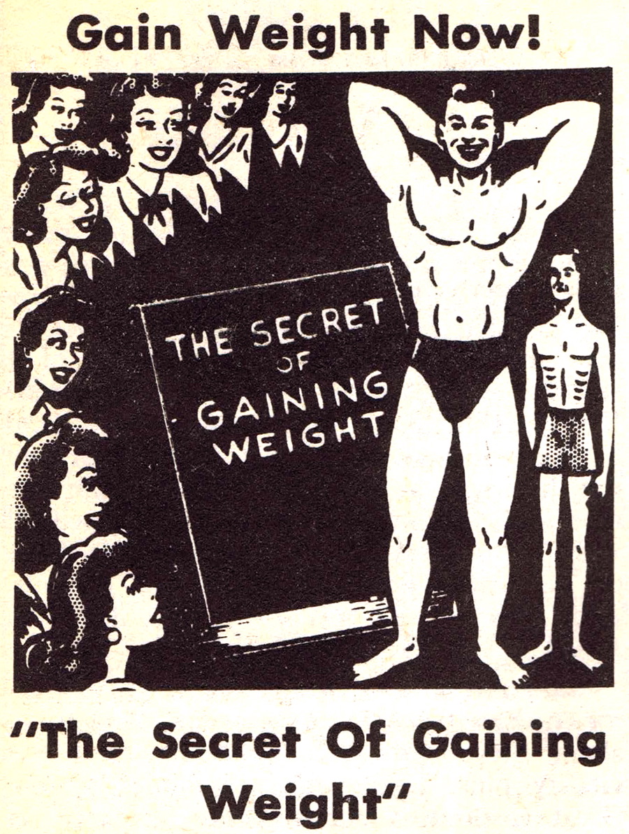 When going through these muscle magazines (which I found at a local thrift shop), I noticed quite a few ads and articles about sexual performance. I don’t know what that says about body builders except that being in great shape doesn’t necessarily instill sexual confidence. But then neither does being out of shape.