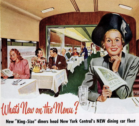 On a train, however, I’m told that the tighter quarters and long hours tend to stimulate conversation. So lots of vintage train-travel marketing played up the idea of meeting and socializing with interesting, well-dressed fellow travelers.