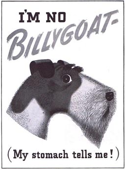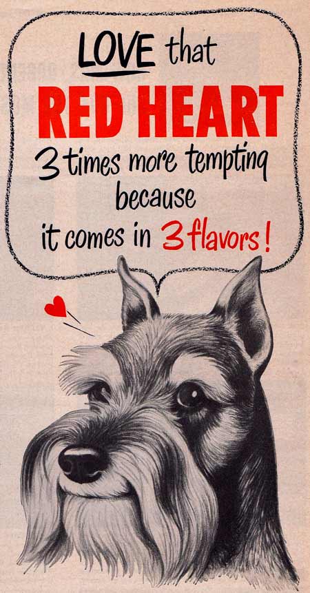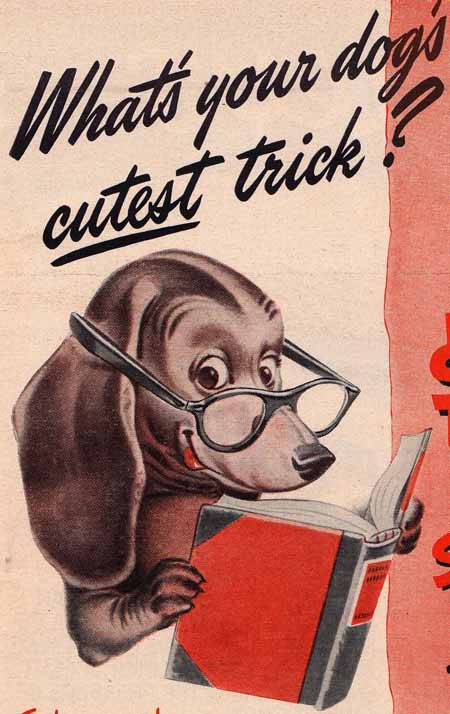 The selling of dog food seems to cycle through one of several themes. It’s either better for the health of your dog, easier for you, or tastier to your dog. Hopefully, it’s all three. These two drawings are from 1941.