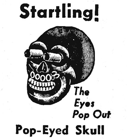 And these days most novelty items are photographed. I much prefer the exaggerated artwork showing shocked faces, knee-slapping laughter, and electrified reactions that was common in 1940. Part of the excitement then was not completely knowing what your dime was buying. When it came in the mail it either met your expectations, or made you feel a bit like you might have been the victim of the vendor’s practical joke. I doubt a 25-cent fake diamond looked very real, or that anyone would actually try to eat 12-cent rubber eggs. But from the drawings, you’d think so.